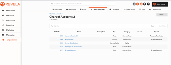 Chart of Accounts in Revela