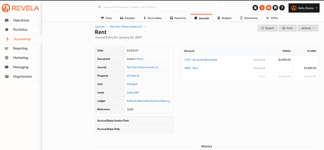Accounts Receivable: Increases when a tenant charge is recorded.