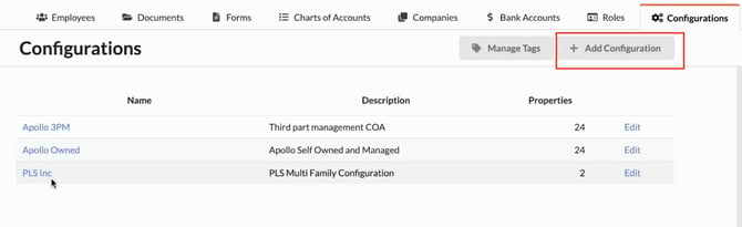 • To get started with adding a new configuration, you would select Add Configuration on the top right of the screen.