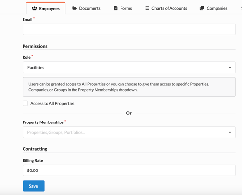If the employee should have limited property access, select the specific properties they can access from the dropdown list.