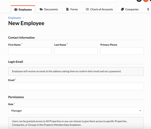 If an employee’s property access changes, update their profile in Organization > Employees.