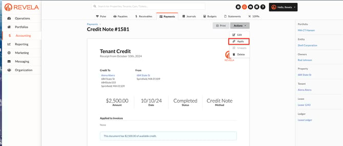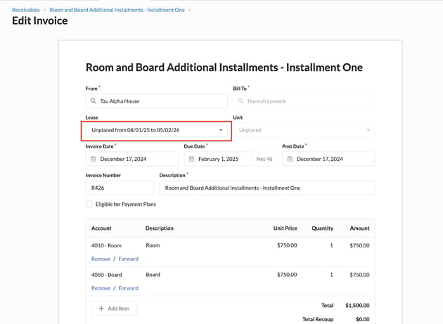 - Under Lease Term, assign the correct unit (even if unapplied).