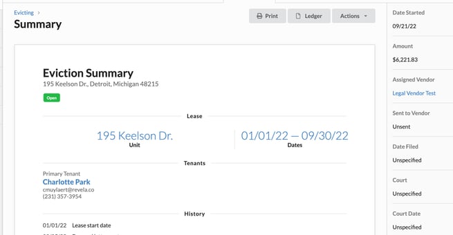 If a tenant remains delinquent, move them to Evicting status to generate an eviction packet