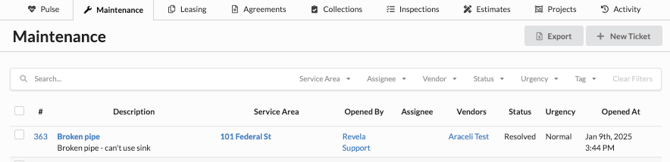 - Purpose: This guide explains how to manage maintenance requests in Revela, including creating, updating, and assigning tickets.