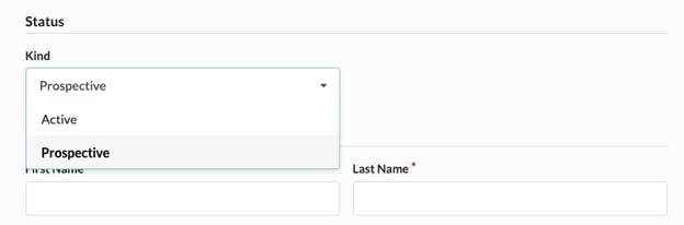 When you're prompted to fill out the fields for the new owner, select the 'Prospective' option from the ‘Kind’ field in the form below.