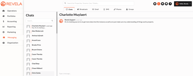- Purpose: This guide explains how to send and manage chats in Revela for seamless communication between property managers