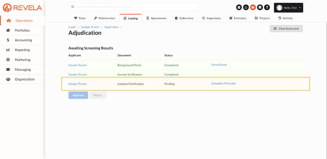 Manual Entry: If a landlord provides verification via phone or email, the details can be manually entered into the adjudication screen